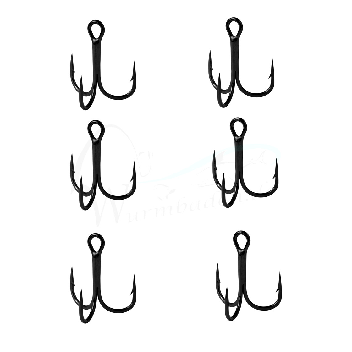 - Sechs Drillingshaken in der Größe 3/0.
