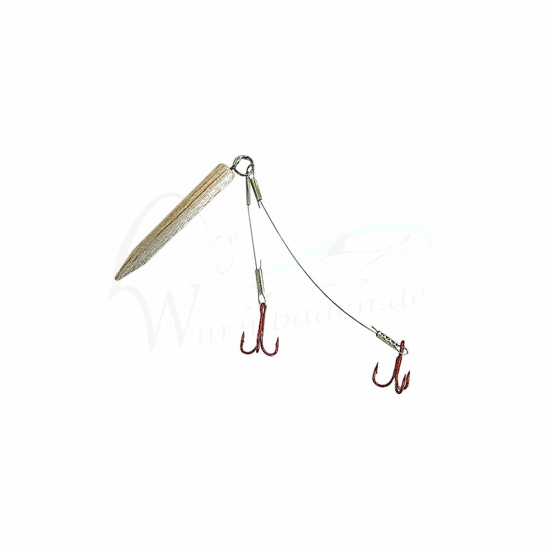 - Ein Köderfisch System mit zwei Drillingen und Auftriebskörper in der Größe L und einer Ködergröße von 12-14 cm.