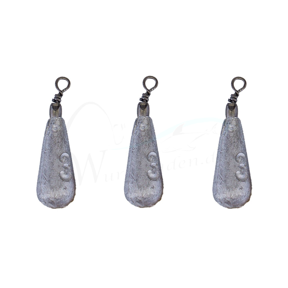 - Drei Birnenbleie mit Wirbel und einem Gewicht von 3 Gramm.