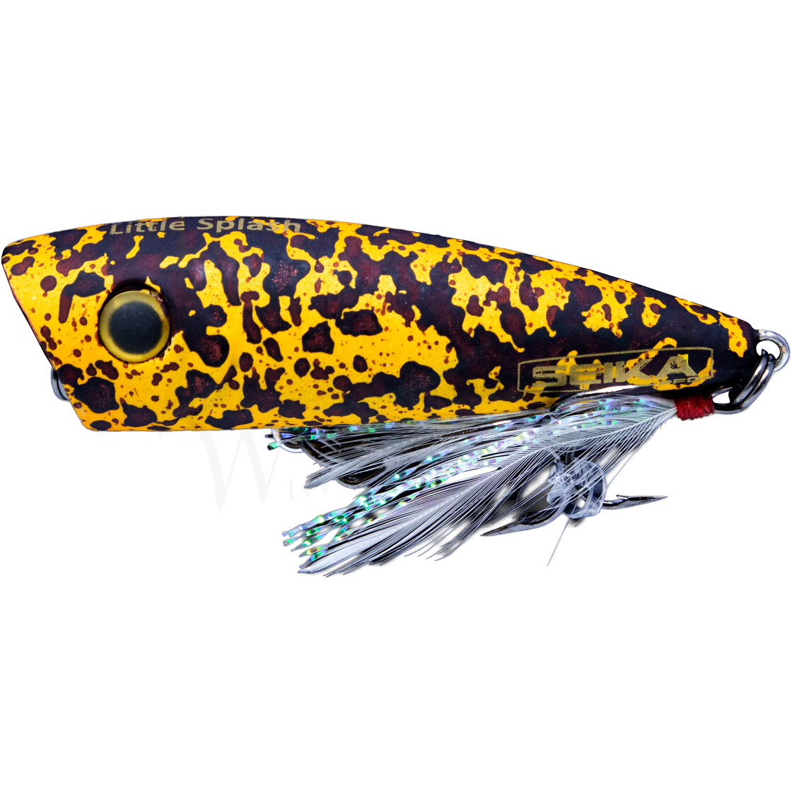 - Ein schwimmender Oberflächenwobbler Little Splash in der Ausführung Brown Pointer, mit einer Länge von 6 cm und einem Gewicht von 8 g.